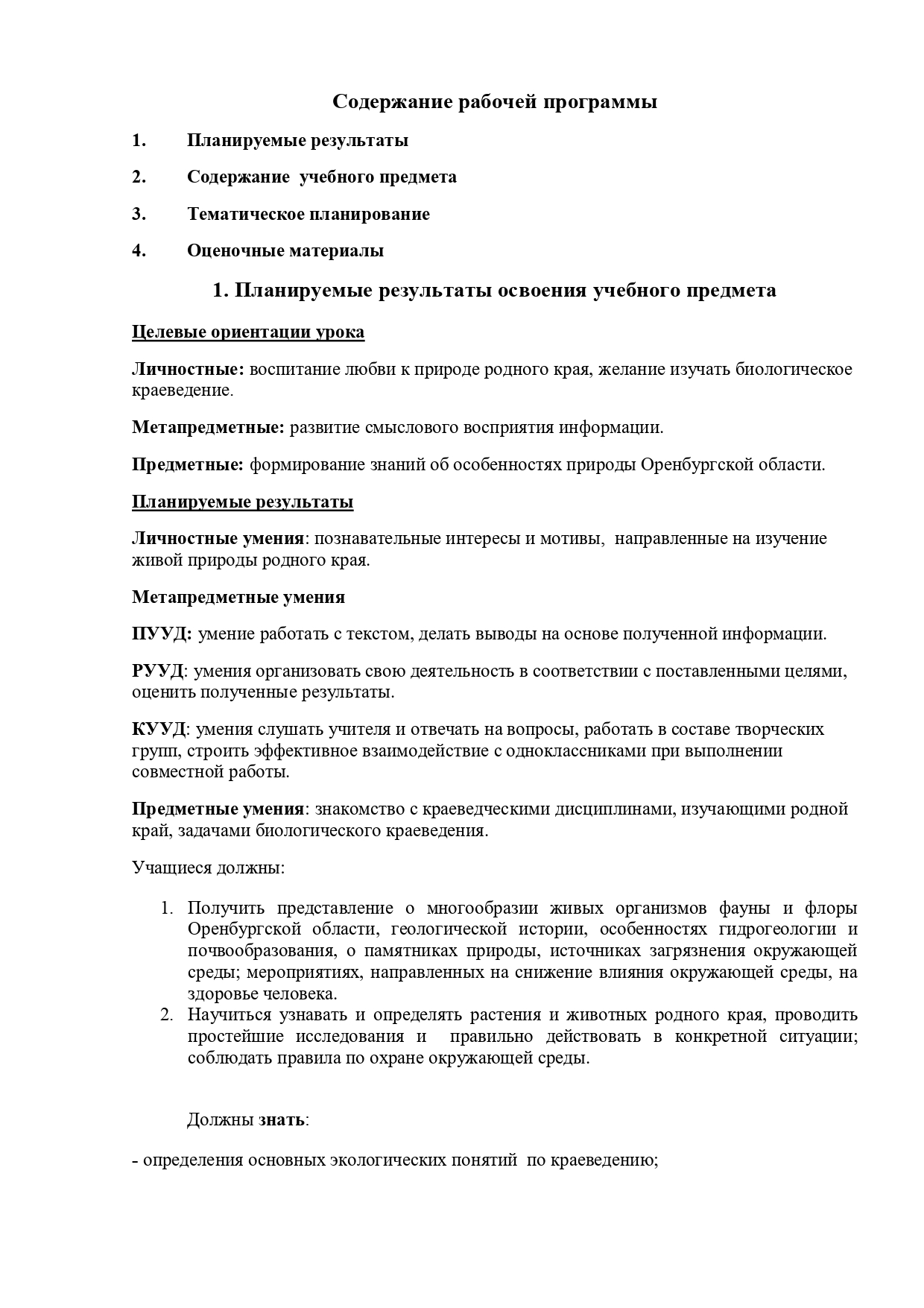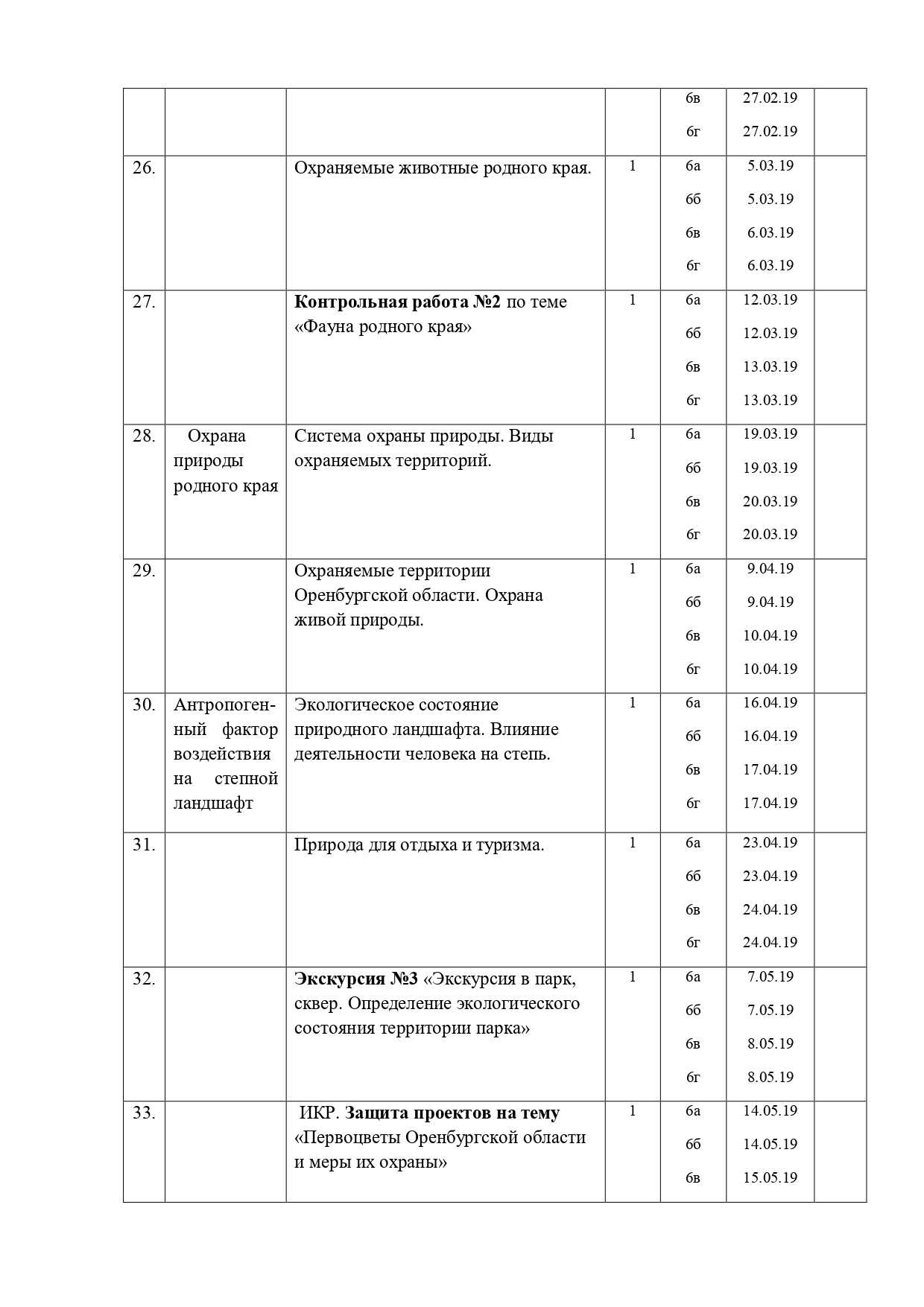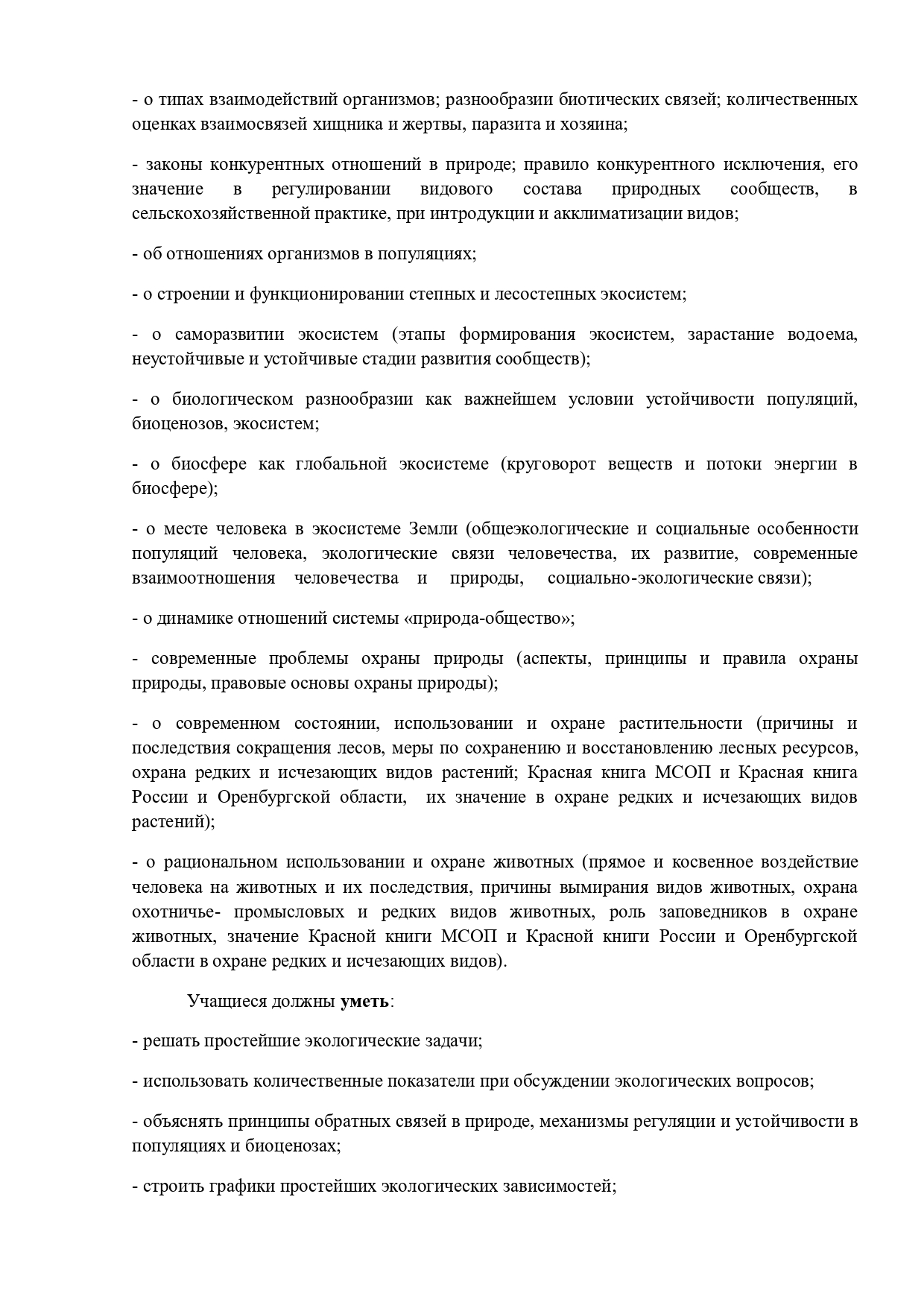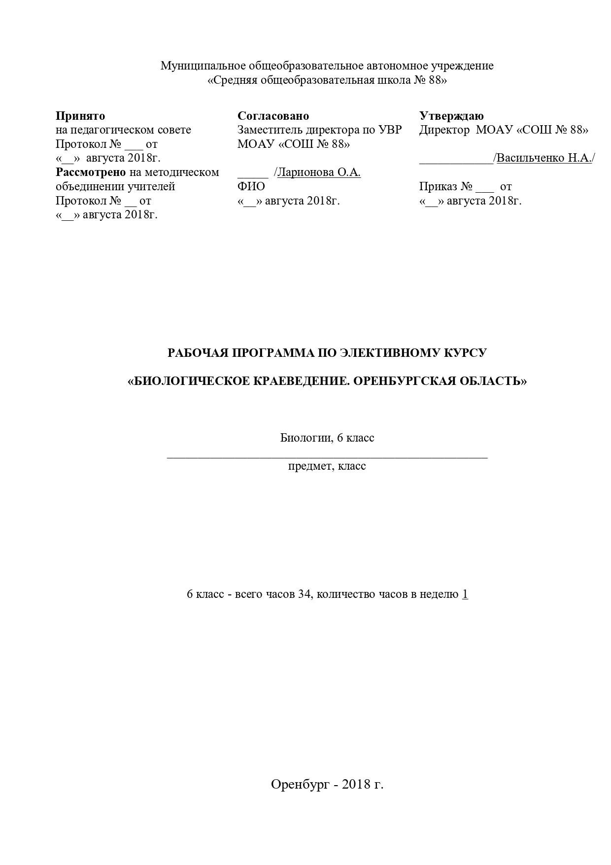РАБОЧАЯ ПРОГРАММА ПО ЭЛЕКТИВНОМУ КУРСУ «БИОЛОГИЧЕСКОЕ КРАЕВЕДЕНИЕ. ОРЕНБУРГСКАЯ ОБЛАСТЬ» Биологии, 6 класс