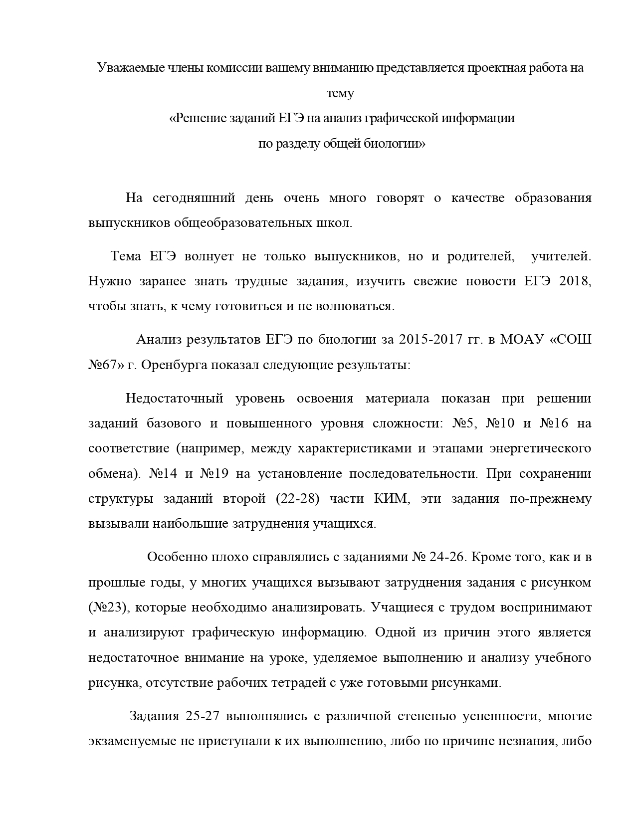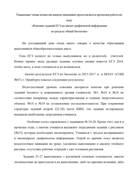 Доклад на тему «Решение заданий ЕГЭ на анализ графической информации по разделу общей биологии»