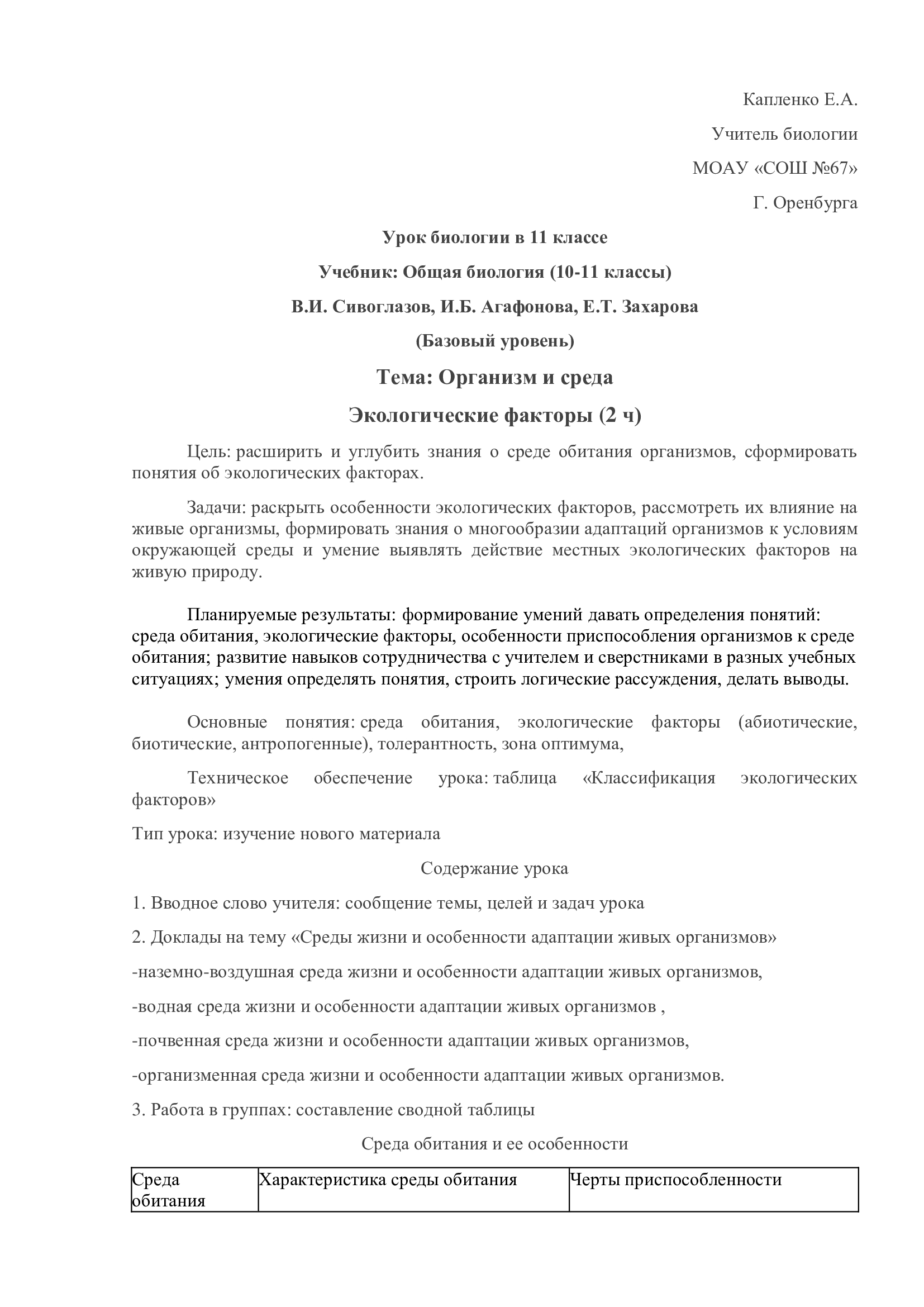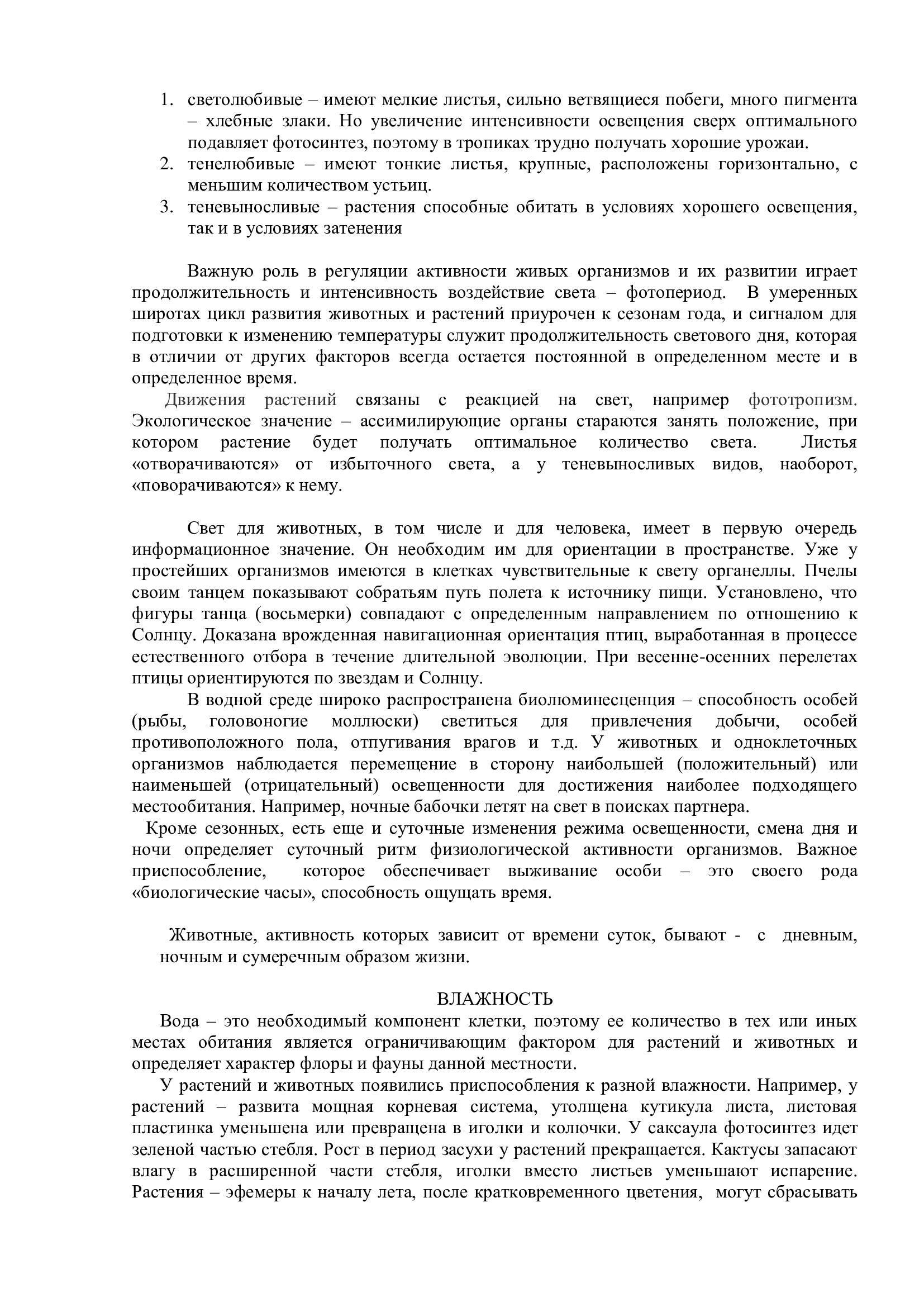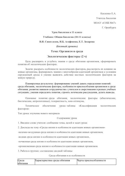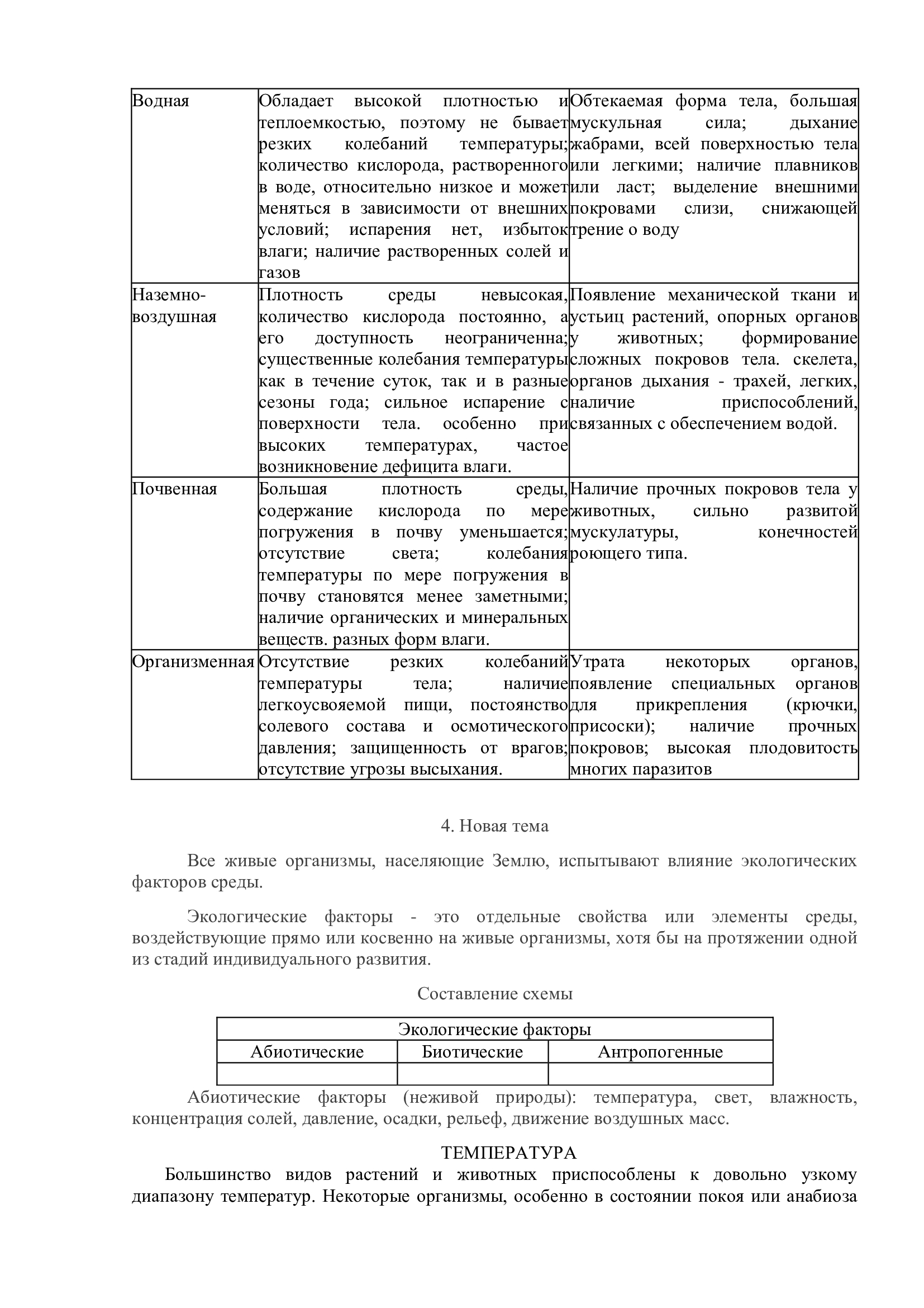 Цель: расширить и углубить знания о среде обитания организмов, сформировать понятия об экологических факторах.