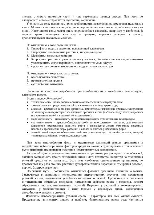 Задачи: раскрыть особенности экологических факторов, рассмотреть их влияние на живые организмы, формировать знания о многообразии адаптаций организмов к условиям окружающей среды и умение выявлять действие местных экологических факторов на живую природу.