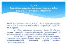 Презентация "Музей боевой и воинской славы под открытым небом (парк им. М.В.Фрунзе) г. Оренбург"