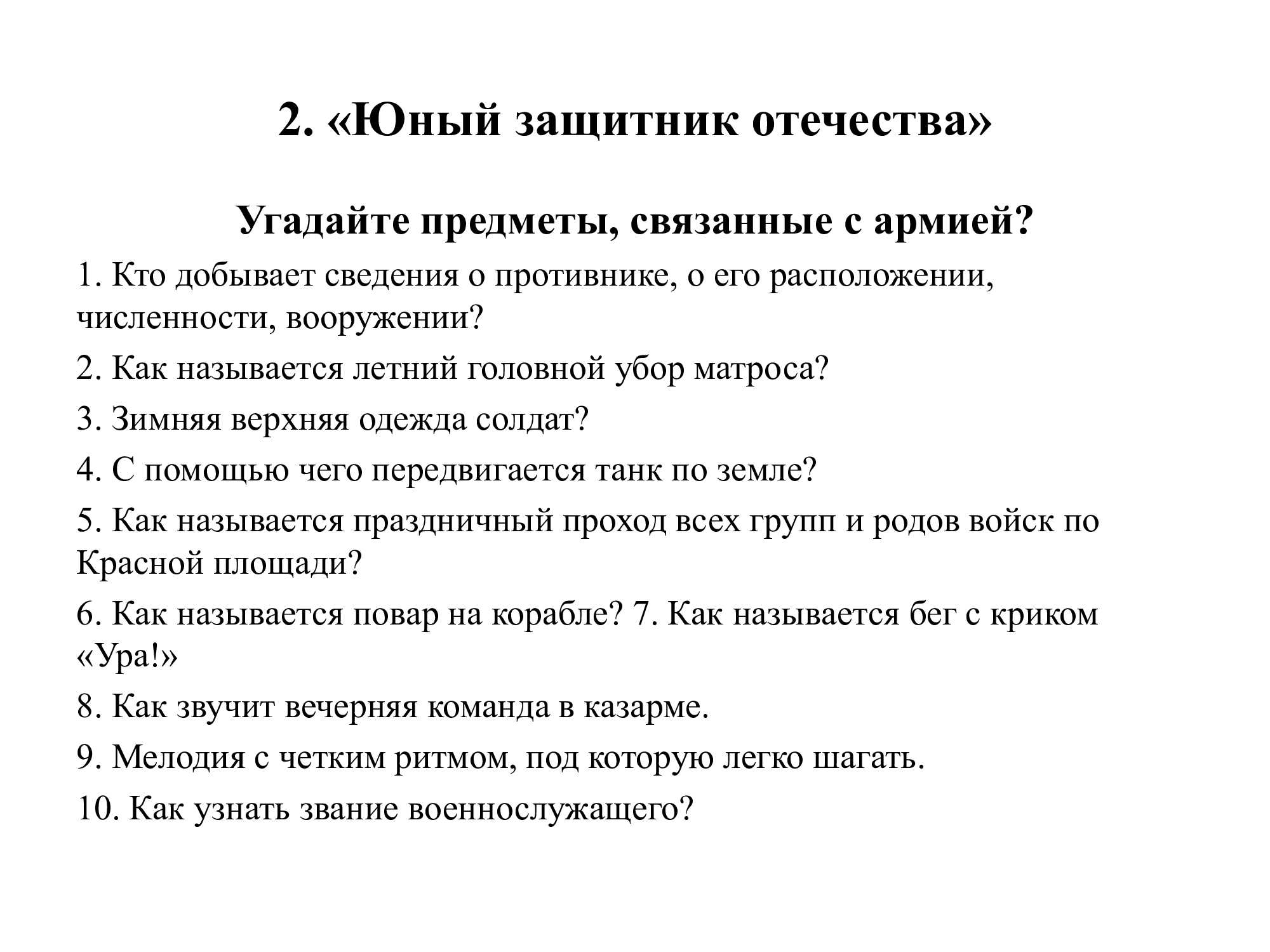 В разработке представлена история праздника День защитника отечества, а также конкурсы для мальчиков:  конкурс на лучшее название команды; на самый оригинальный девиз; конкурс: «Веселые танкисты»; Конкурс: “Отгадай  ребусы” и др.