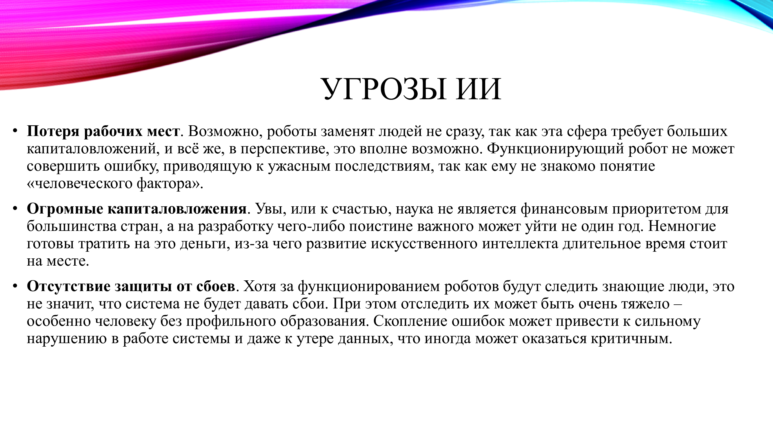 Рассматриваются возможности ИИ, угрозы ИИ и выводы