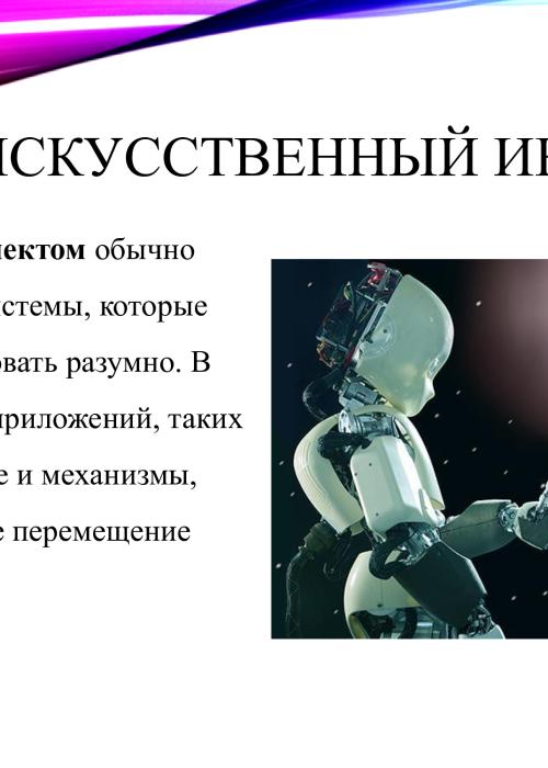Под искусственным интеллектом обычно подразумевают созданные системы, которые способны мыслить и действовать разумно. В их число входят множество приложений, таких как алгоритмы поиска Google и механизмы, обеспечивающие автономное перемещение беспилотных автомобилей.