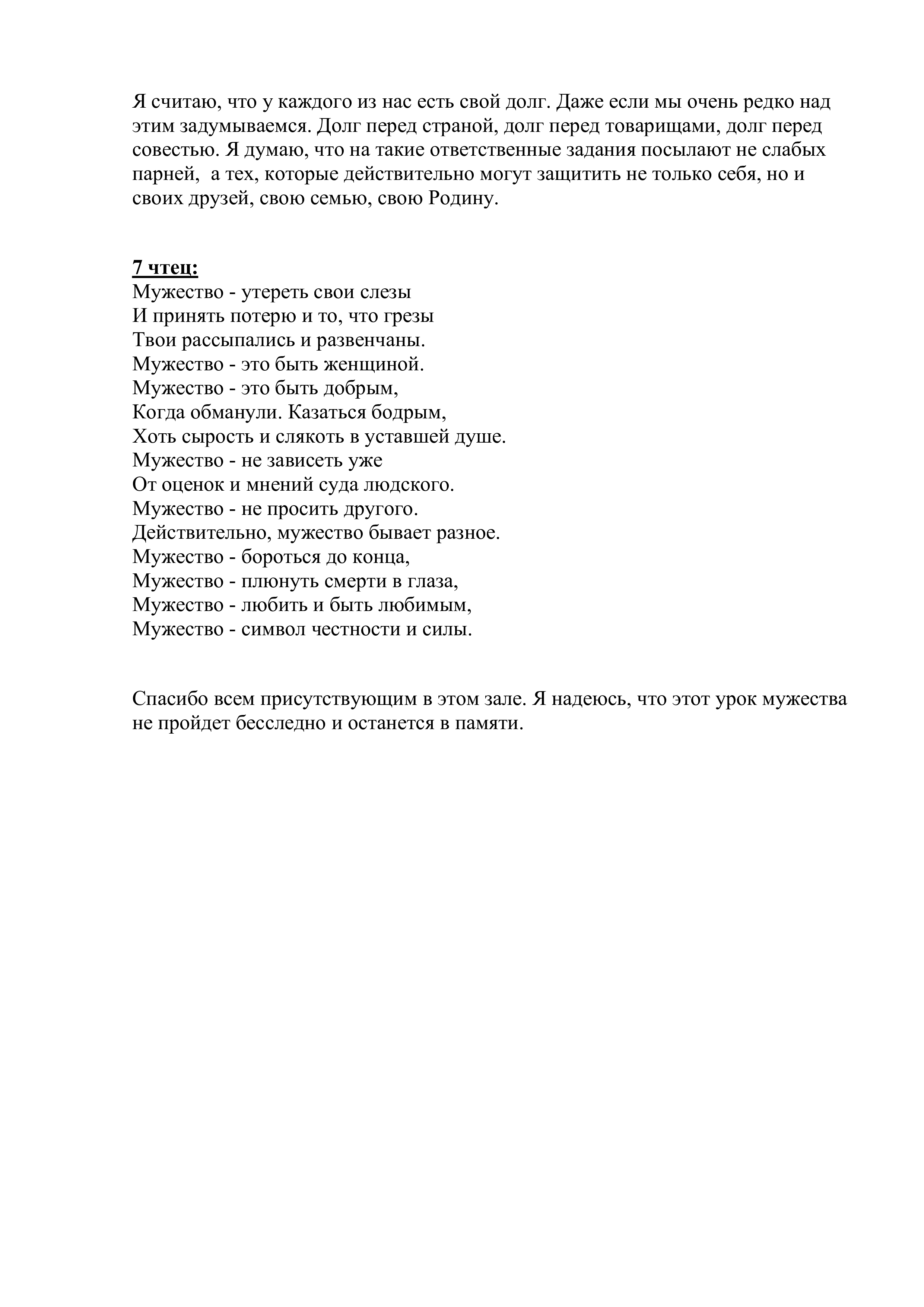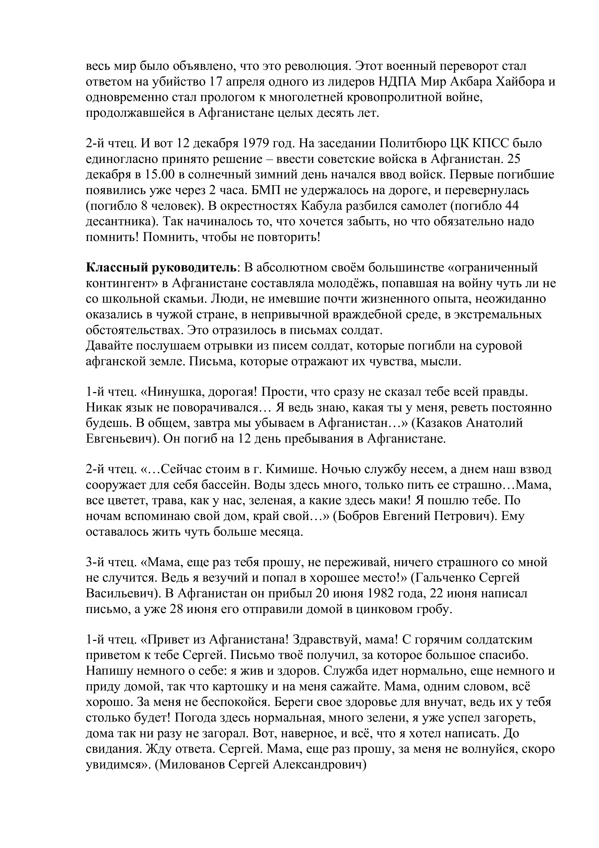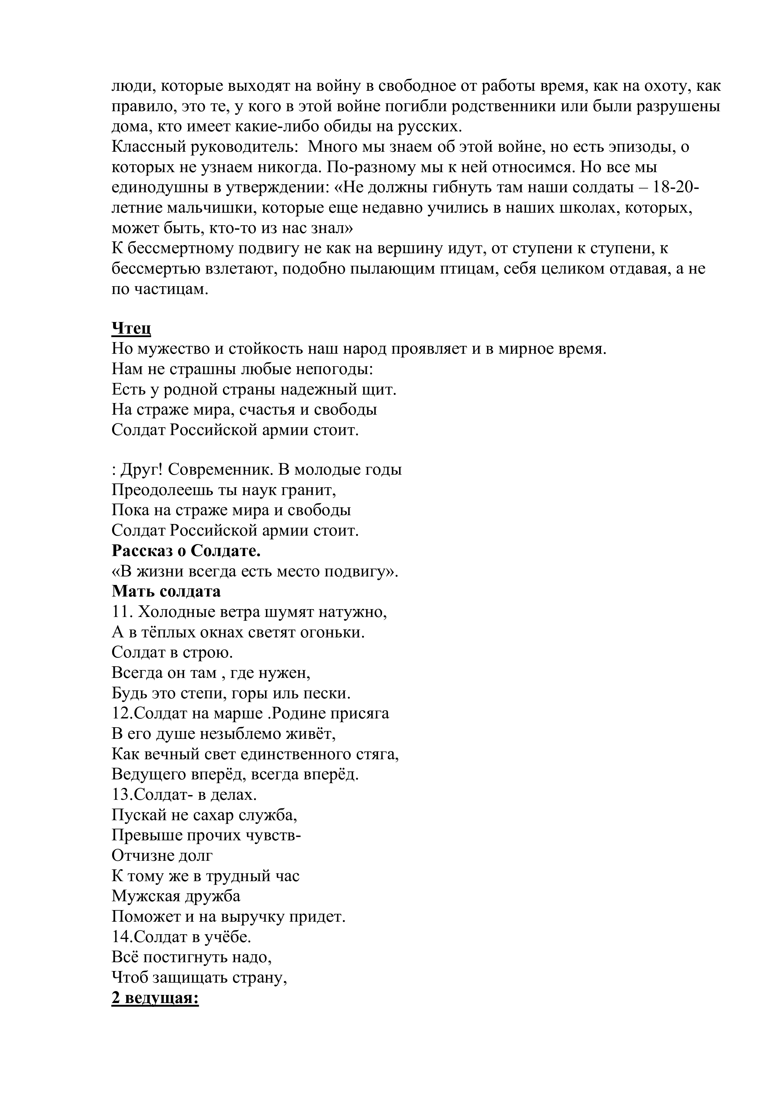 Разработка внеклассного мероприятия Час Мужества «Солдат войны не выбирает…»