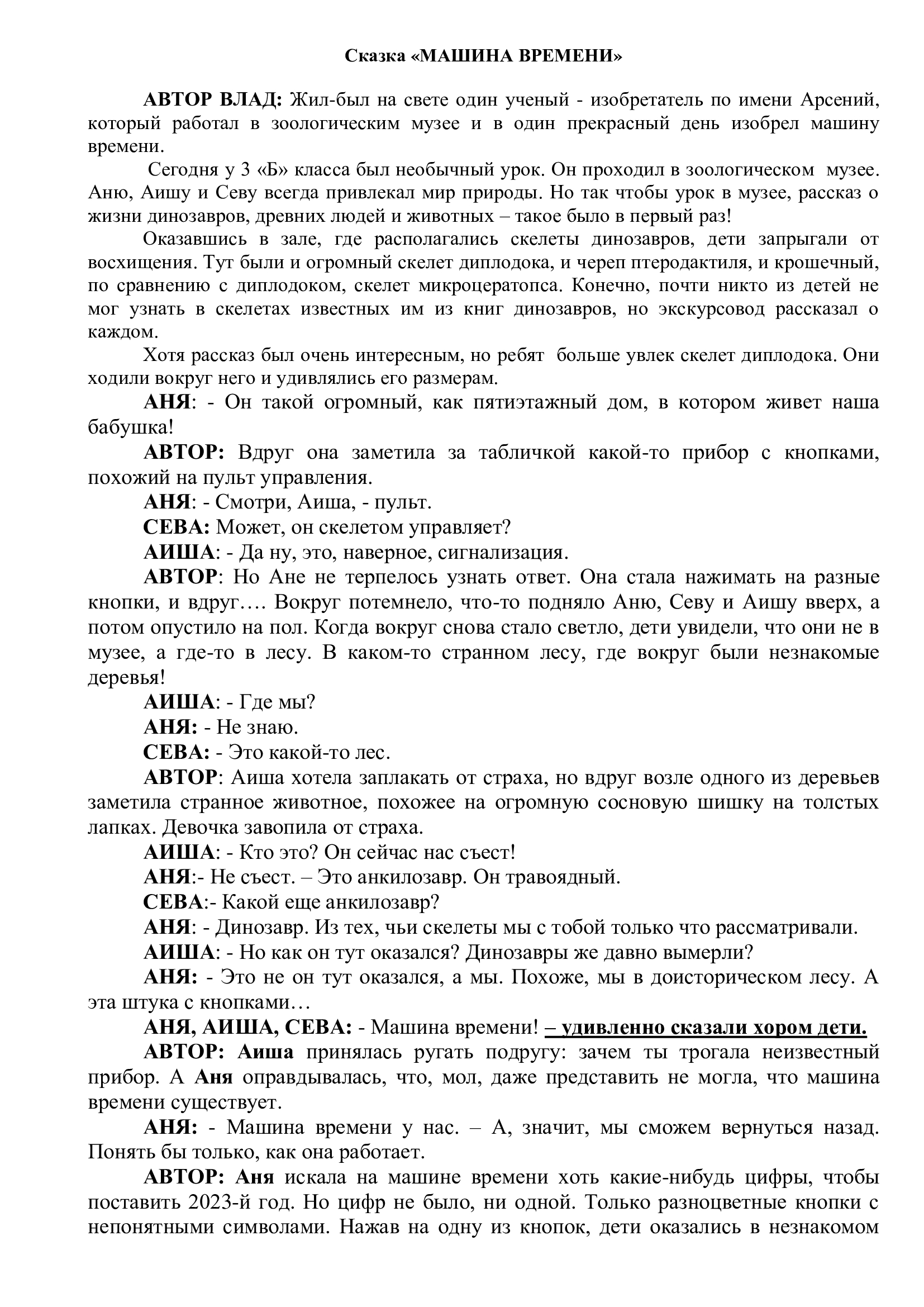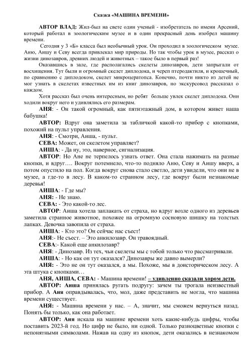 Жил-был на свете один ученый - изобретатель по имени Арсений, который работал в зоологическим музее и в один прекрасный день изобрел машину времени.